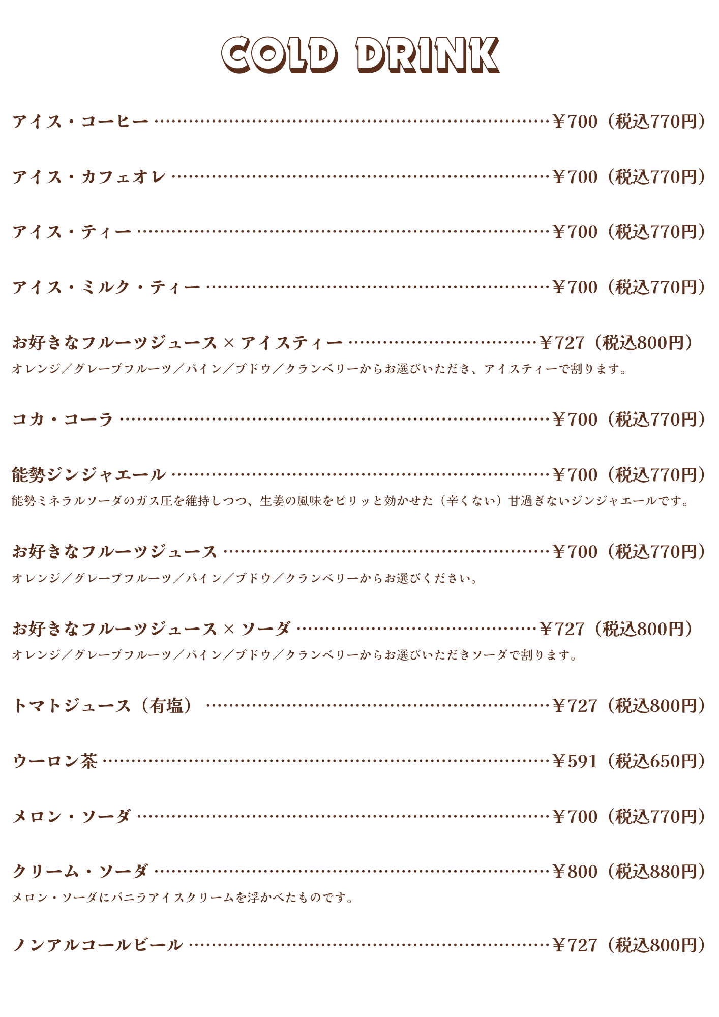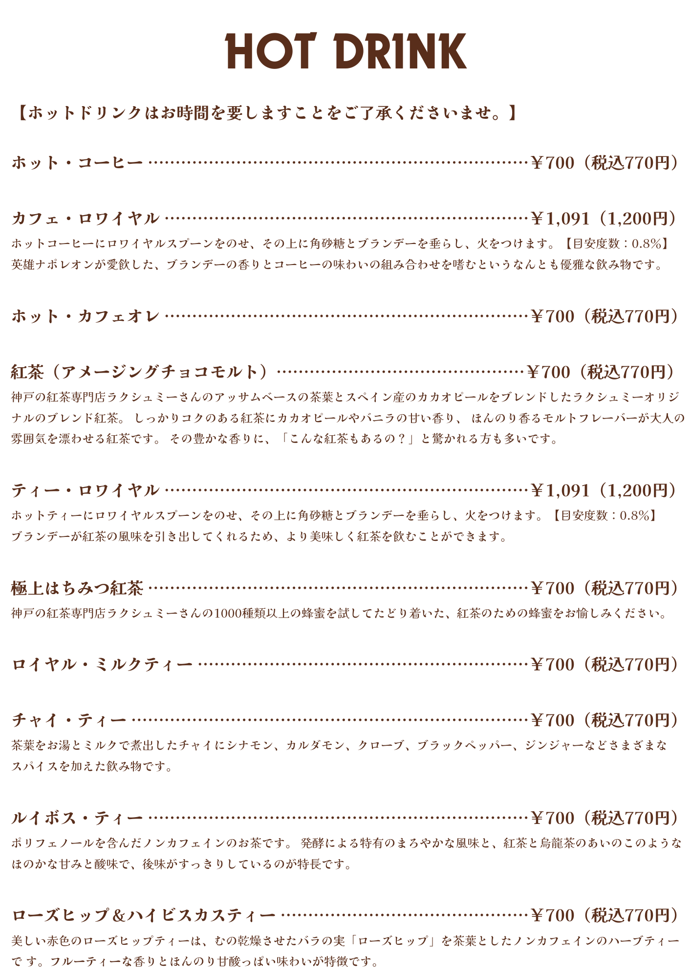 カフェメニュー
