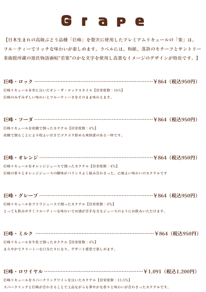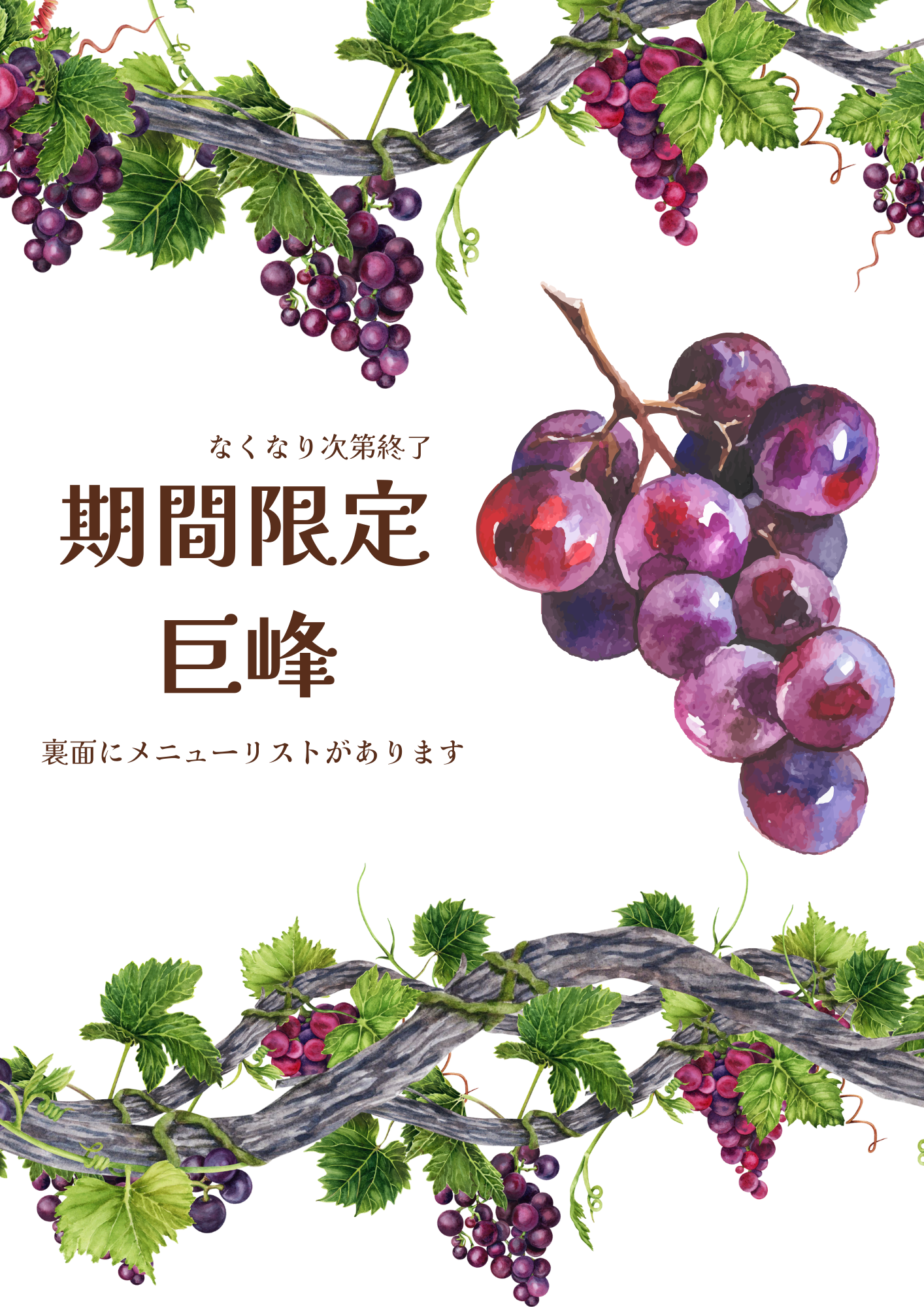 「巨峰」をテーマとした期間限定メニューをご提供しております。ぜひご賞味ください。